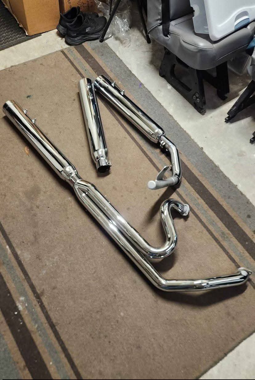 The D&D Fatcat Exhaust (Ghost Pipe) for 2017–2023 Harley‑Davidson Touring models is a high‑performance exhaust system engineered for riders who want a bold sound, improved throttle response, and aggressive custom style without sacrificing rideability. Designed specifically for Harley‑Davidson’s touring platform—including Street Glide, Road Glide, Ultra Limited, and other bagger variants—this exhaust system blends premium craftsmanship, innovative engineering, and a commanding acoustic signature that enhances both performance and presence on the road. D&Damp Fatcat Exhaust 2017-23 Harley Touring Ghost Pipe With Louvered And Perforated Baffle
