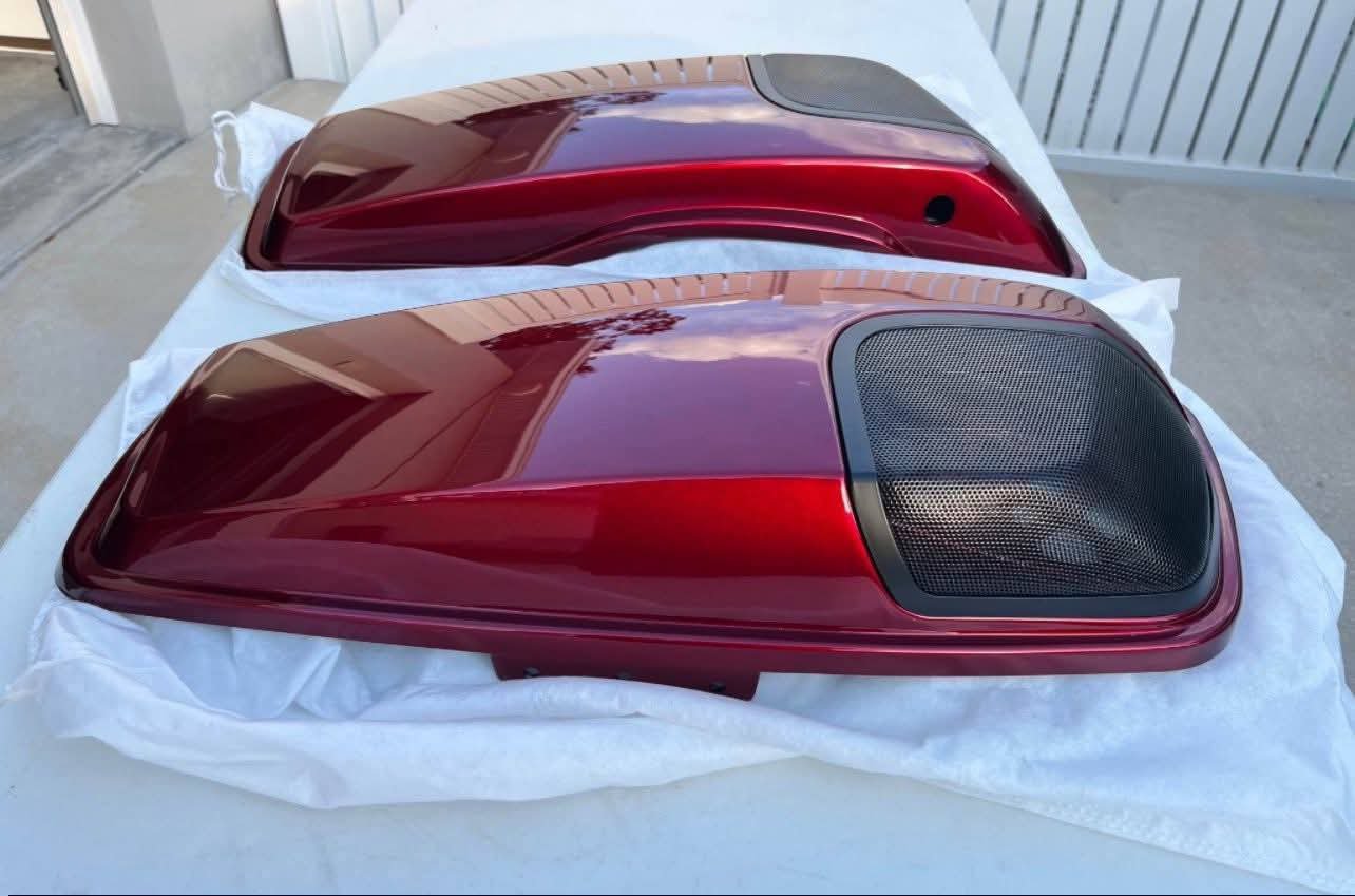 The lids are also paint‑ready or color‑matched to your Harley’s factory finish. For riders who prefer a seamless look, they can be ordered pre‑painted to match popular Harley colors like Vivid Black, Charcoal Satin, Gauntlet Gray, Billiard Red, and others. Matching paint enhances the overall look of the bike and preserves a cohesive aesthetic. Harley Davidson Touring Saddlebag Lids with 5×7 Speaker Cutouts and Grills For 2014-2023